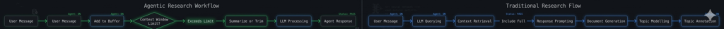 Figure 1: Traditional research workflow vs. agentic research workflow