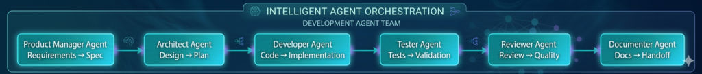 Modern agentic development systems use a coordinated team of specialized agents: