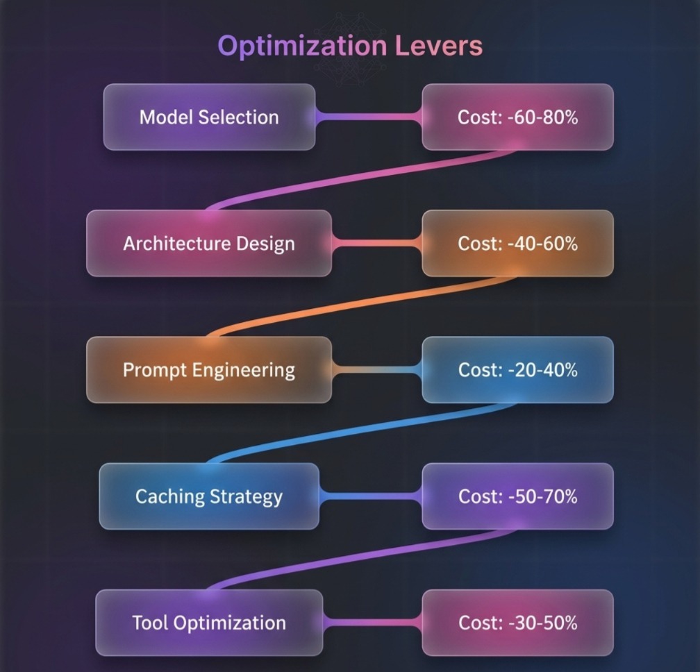 - Semantic Caching Infrastructure: 50-70% reduction for repetitive tasks