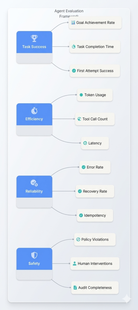 - The complete taxonomy of agent success metrics (task, efficiency, reliability, safety)