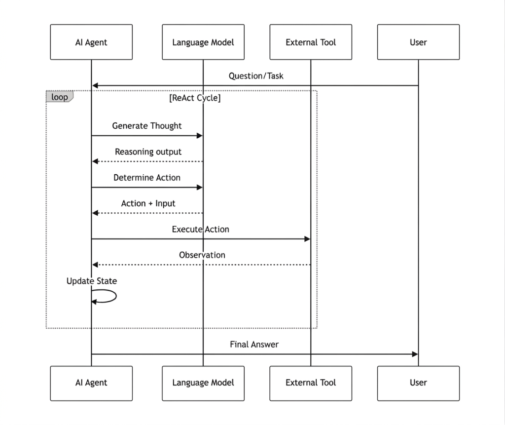 Imagine an AI that doesn’t just guess the answer but thinks through problems step by step, searches for information when it doesn’t know something, and adjusts its approach based on what it finds. This is the essence of the ReAct pattern – a revolutionary prompting paradigm that has become the foundation of modern AI agents .